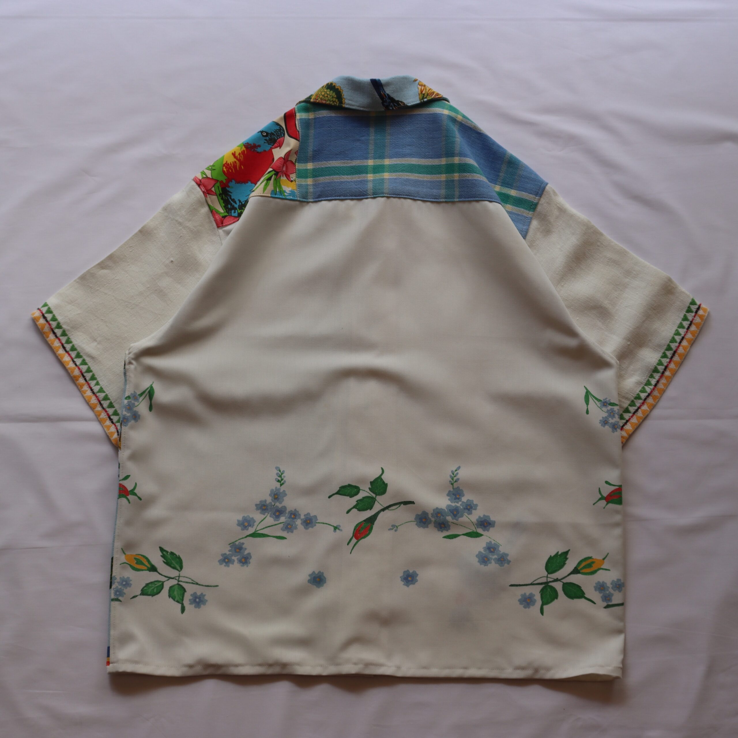 • Hand painted floral back panel, vintage embroidery at sleeve hems
