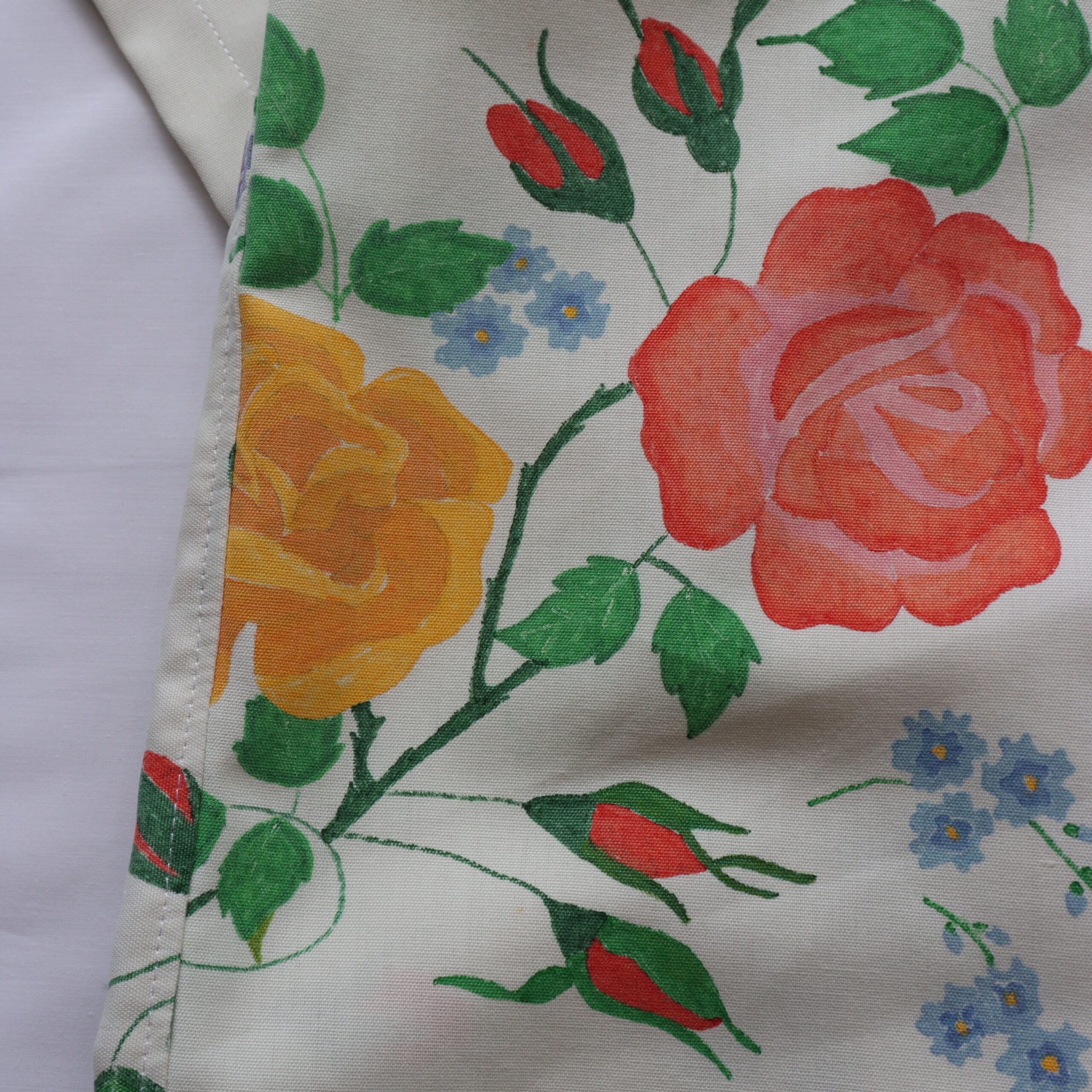 - Made from a vintage, hand painted tablecloth