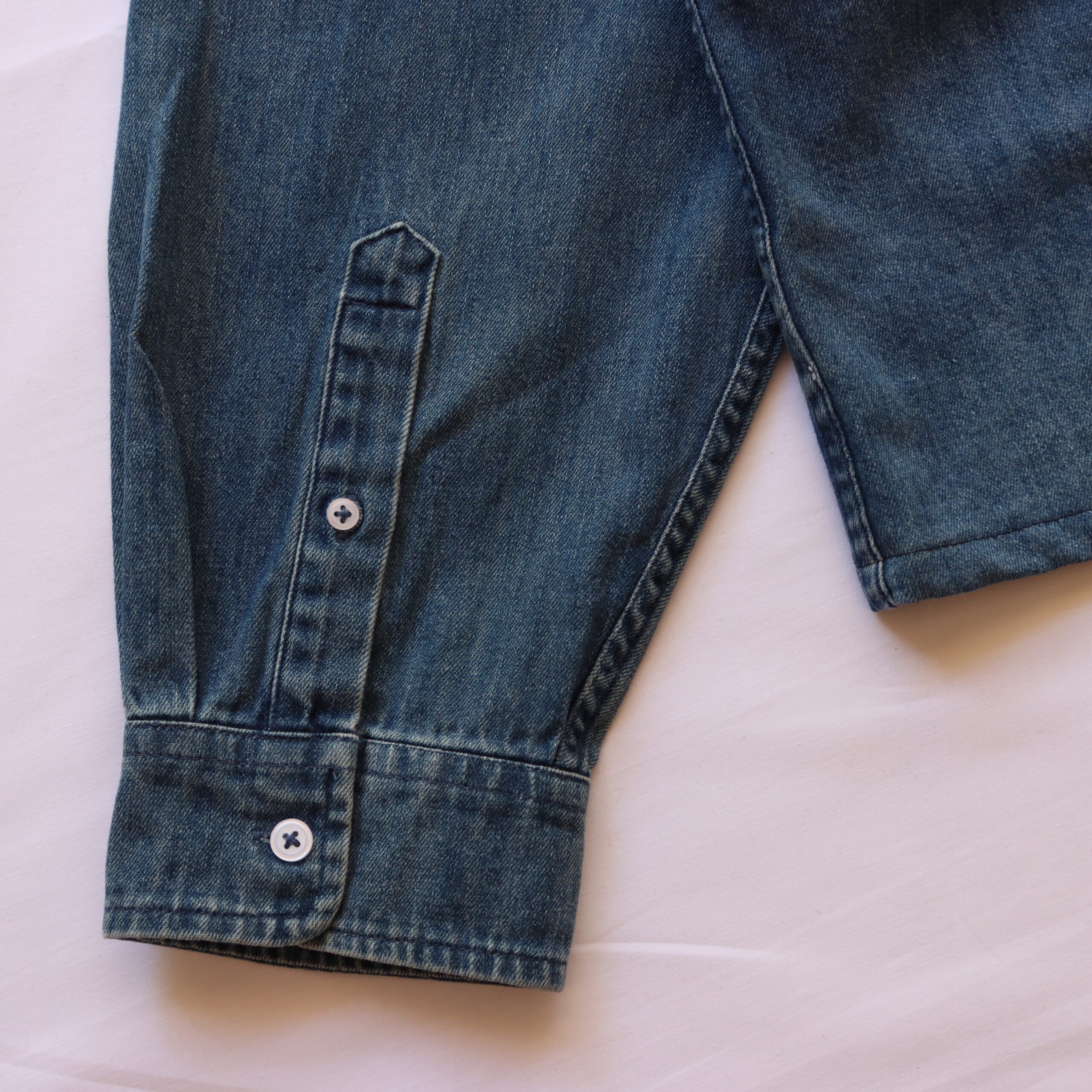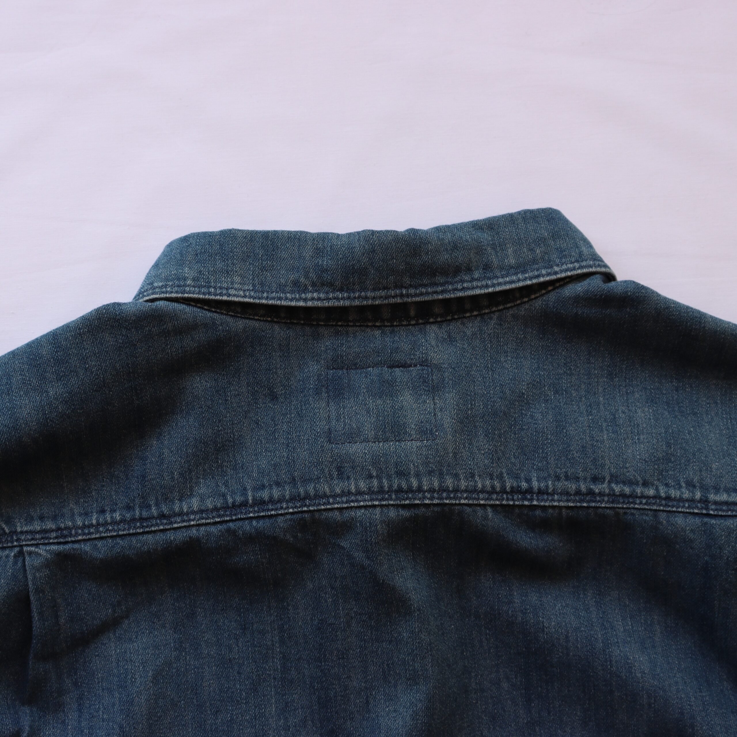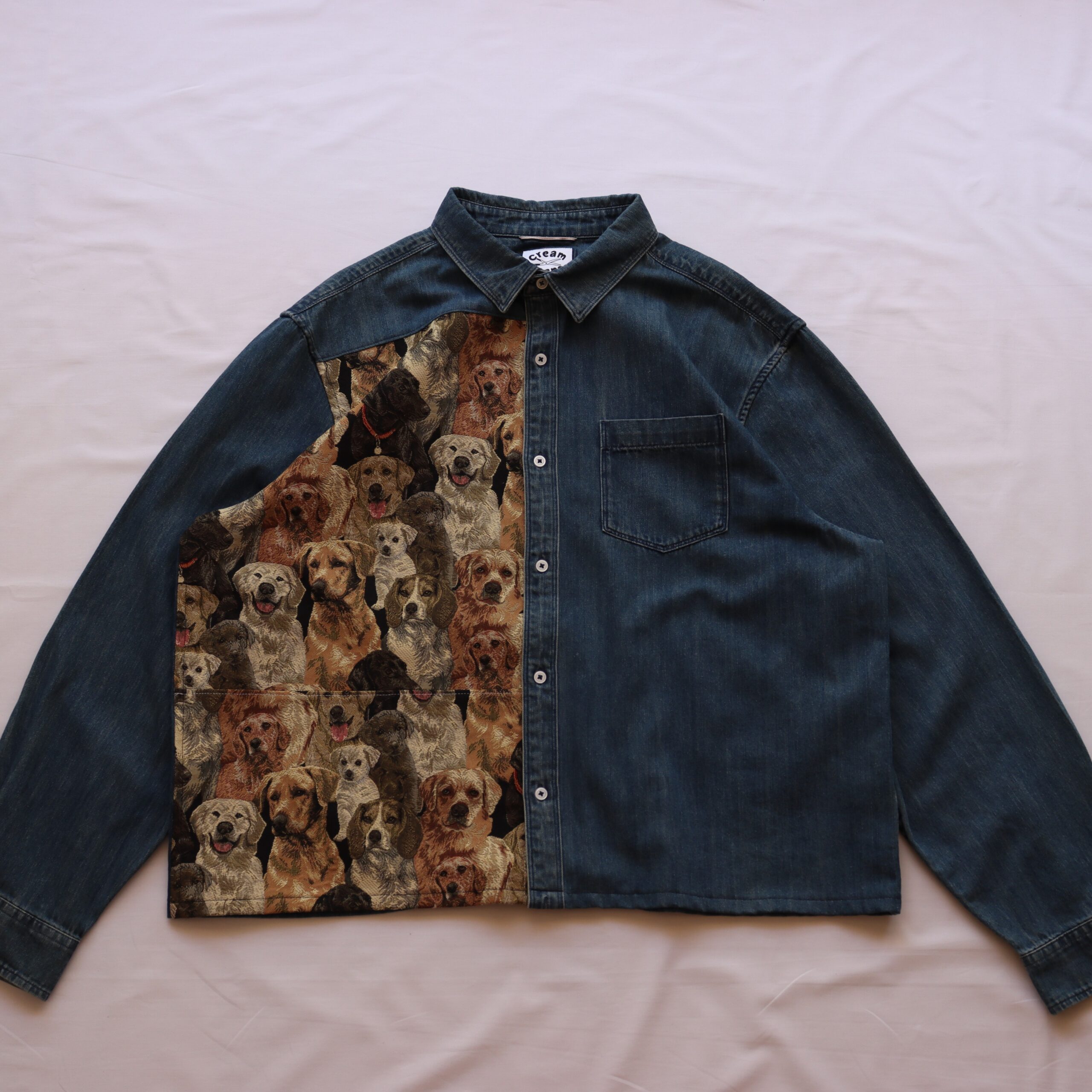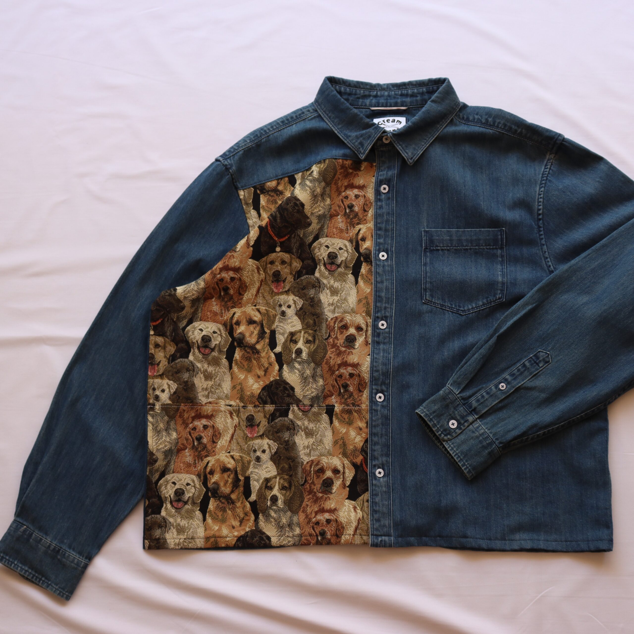 Denim shirt upcycled with woven tapestry fabric – originally from a cushion cover