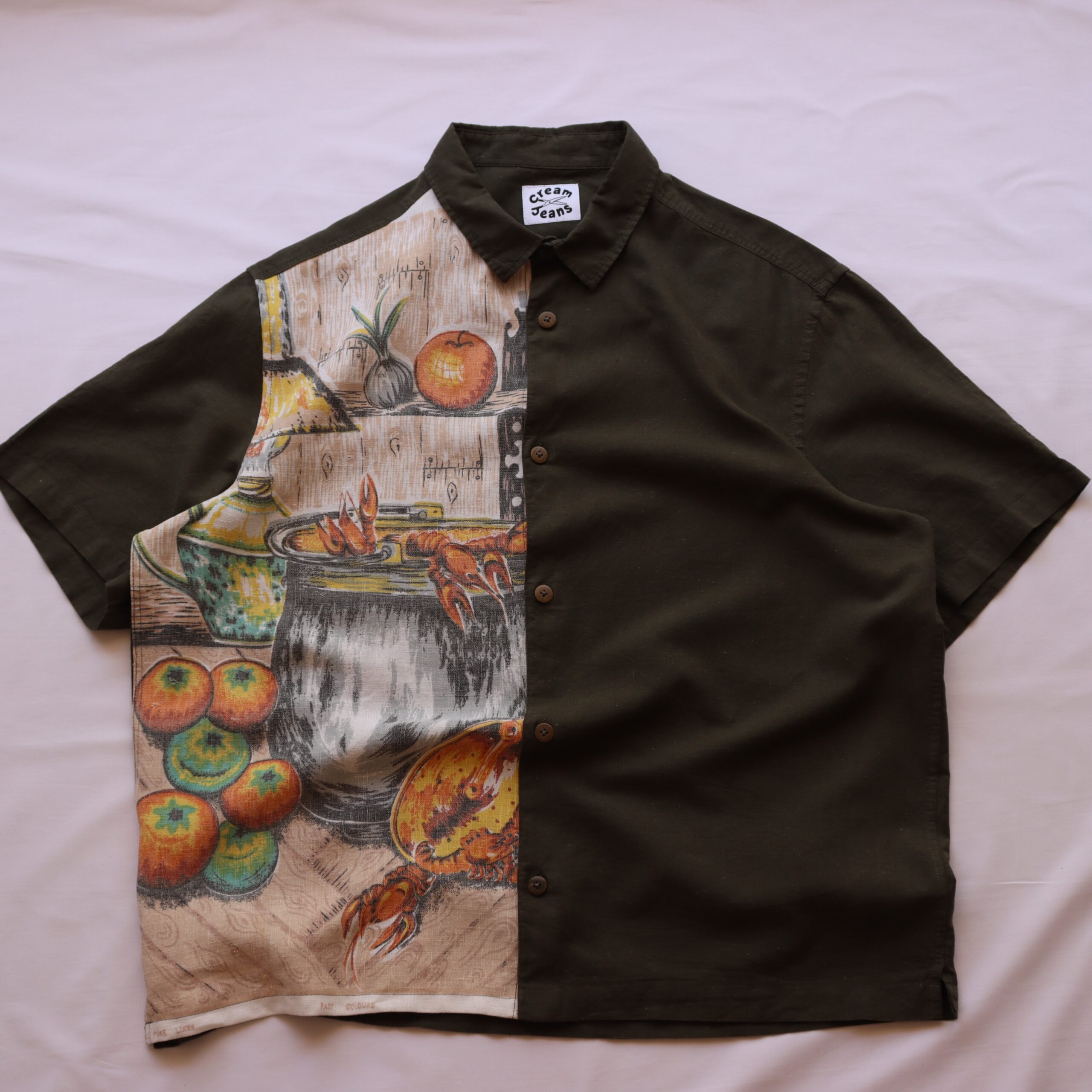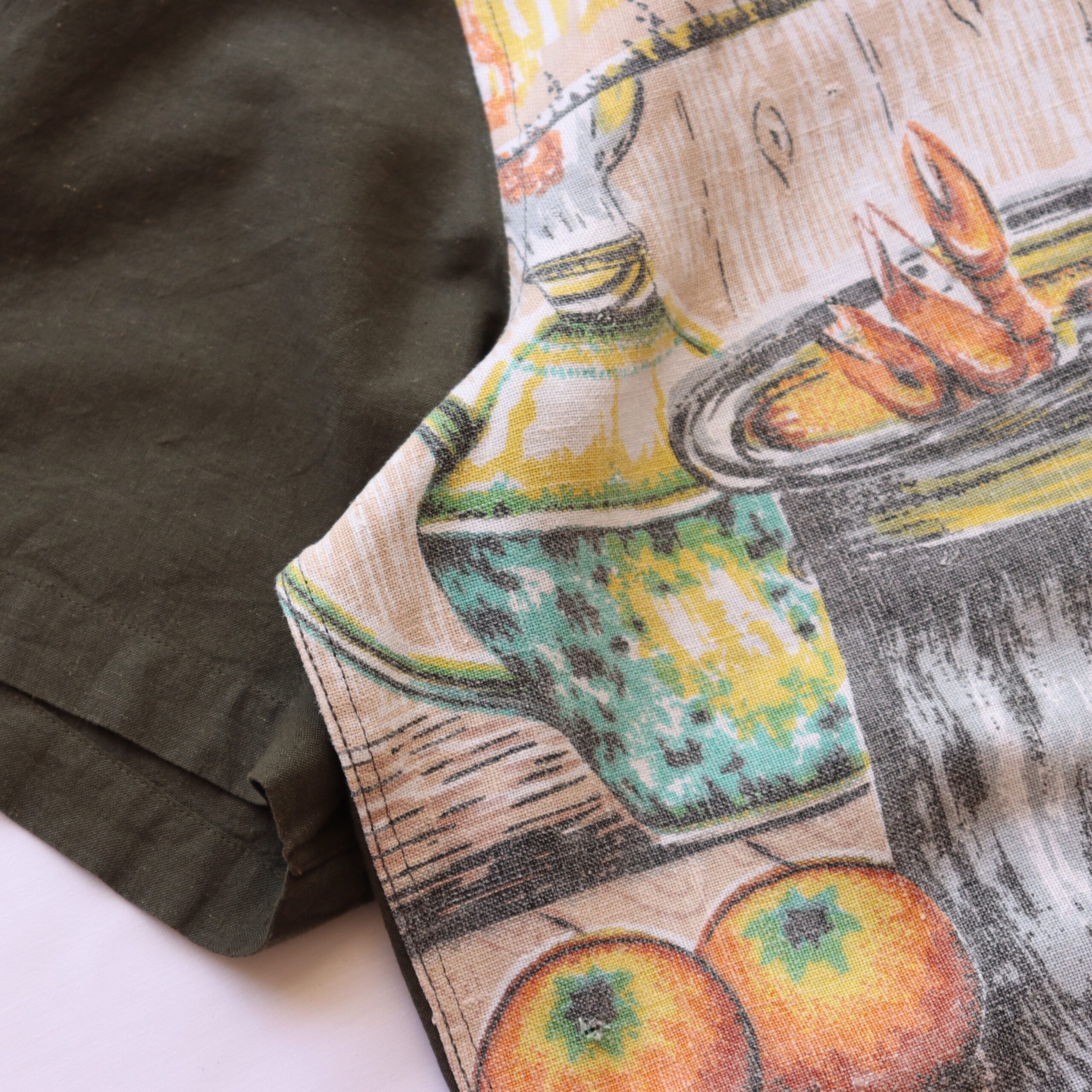 Cotton & linen shirt upcycled with a vintage tea towel